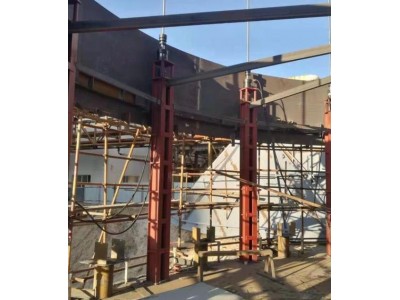 1、液压提升装置。通过PLC控制液压同步提升系统实现提升。PLC控制液压同步系统由液压系统(千斤顶、油管、油泵、油缸等)、传感器等信号传输系统、计算机控制系统三部分组成。液压系统由计算机控制,可以全自动完成同步移位,实现力和位移控制、操作闭锁、过程呈现、故障警报等多种功能。各个千斤顶都带有可以自动和手动锁死的阀,各个油泵既可以单操作,也可以由电脑主控系统统一操作,既,又灵活。