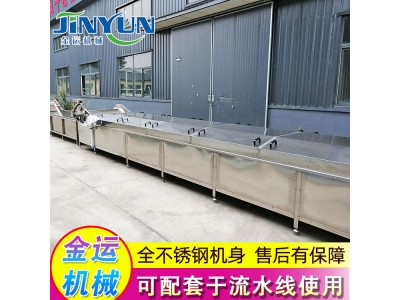特点:采用食品级材料可靠。输送平稳,速度可调,物料随输送带的行进运动,能够避免对输送物的损坏。噪音较小,适合于工作环境要求比较安静的场合。结构简单,便于维护。能耗较小,使用成本低。设备配备上漂压网带,可以防止产品在水中因浮力作用产生上浮滞留现象。本机以热水为介质,分杀菌槽、冷却槽两部分。整体采用不锈钢制作,可根据包装物的要求对温度和时间进行任意调整。该机结构紧凑、操作方便、故障率低,加热方式采用锅炉蒸汽或锅炉热水,特别适合连续杀菌作业。设备采用手自控温系统,水质升温快、受热均匀、温差小温度可调,适合于不同产品的连续性巴氏杀菌。水浴式灭菌功能可有效的将物料均衡的混合在介质水中,提供了对物品的杀菌效果,可调速式输送系统可有效的控制产品的灭菌时间,合格的完成产品的灭菌工艺。