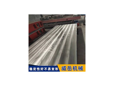 专为机床设备安装量身定制的结构细节,提升适配性与实用性。台面按机床安装标准预设密集型安装螺纹孔与 T 型槽(槽宽 22mm-36mm,间距 150-250mm),可通过 T 型螺栓、压板等配件快速固定机床底座,确保机床与平台的牢固连接,避免运行时产生位移。平台边缘采用斜角打磨处理,无毛刺锐角,方便机床吊装与定位,同时保护操作人员安全。非工作面采用静电喷塑工艺,防锈耐磨且易清洁,能适应车间复杂环境。常规规格涵盖 1000mm×1500mm 至 5000mm×8000mm,可根据机床型号(如立式加工、龙门铣床、重型车床等)的尺寸、重量及安装要求,定制专属台面尺寸、支撑点数量、安装孔布局等,甚至可加装起重吊点、防护挡板等个性化功能,完全适配大型机床的安装场景。