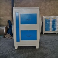 当废气由风机提供动力,负压进入环保箱后进入活性炭吸附层